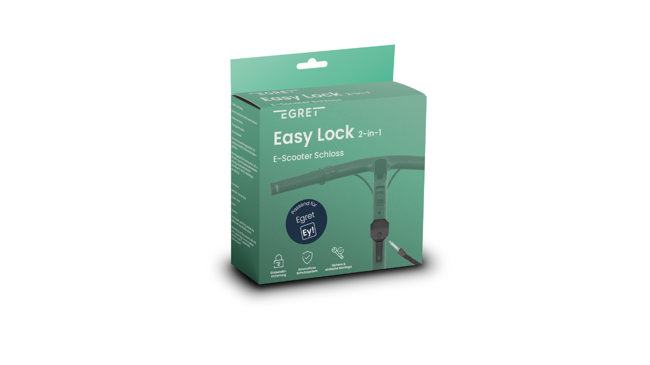 So fährt dein Egret E-Scooter nicht mit jedem mit: Das 2-in-1 E-Scooter Schloss, bestehend aus nachrüstbarem Rahmenschloss für die Lenkstange und flexiblem Kettenschloss, ist die perfekte Diebstahlsicherung für alle Egret Modelle ohne bereits integriertes Rahmenschloss