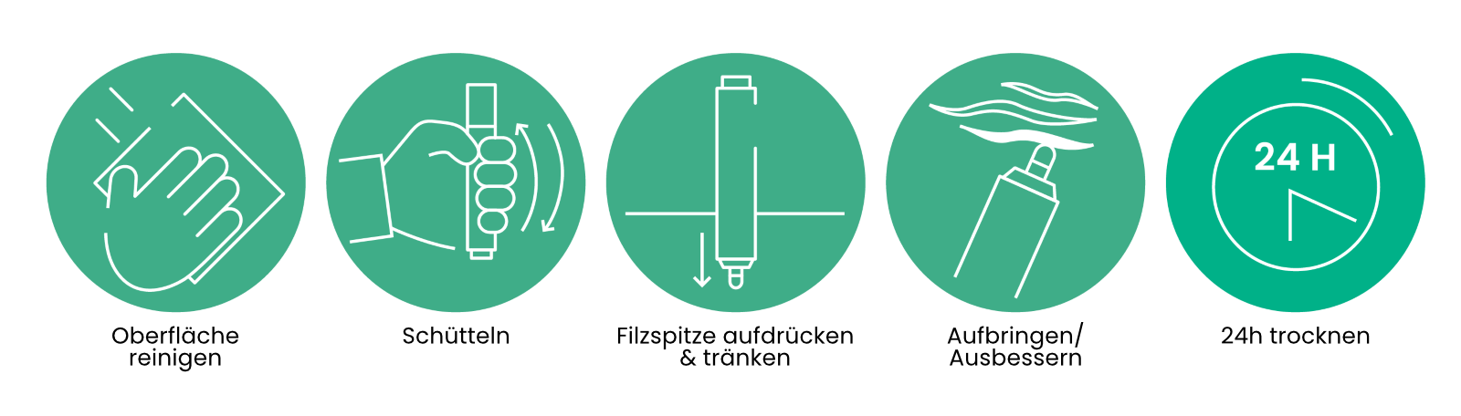 Der Smart Repair Pen repariert und versiegelt Lackschäden an deinem E-Scooter mühelos. Durch die spezielle 3mm-Stiftspitze lässt sich der Lack präzise und dank hoher Deckkraft wirkungsvoll aufbringen. Die Anwendung ist einfach und ganz ohne Werkstattbesuch zuhause machbar: Trage den Lack in 5 Schritten direkt auf die betroffene Stelle auf und sag kleinen Schrammen Lebewohl.