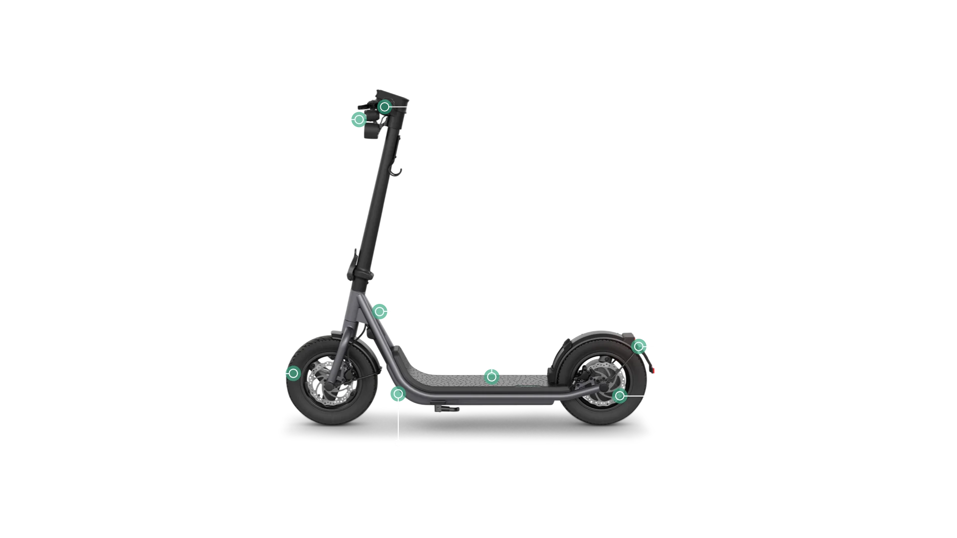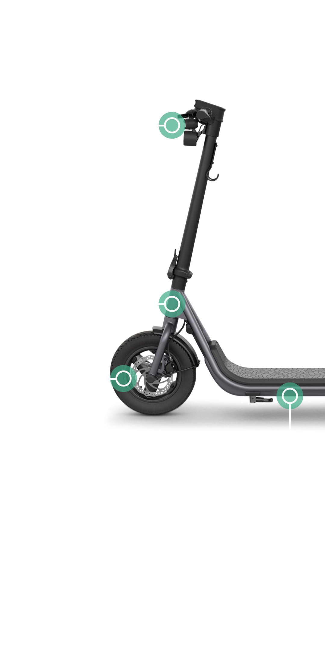 Beim Egret X+ sind besonders große 12,5"-Luftreifen aufgezogen. Mit ihnen behält dein Allrounder auch auf anspruchsvollen Untergründen die Bodenhaftung. Das Gefühl hoher Laufruhe und Stabilität kannst du in jedem Terrain genießen, denn die Reifen reagieren unbeeindruckt auf unebene Untergründe.