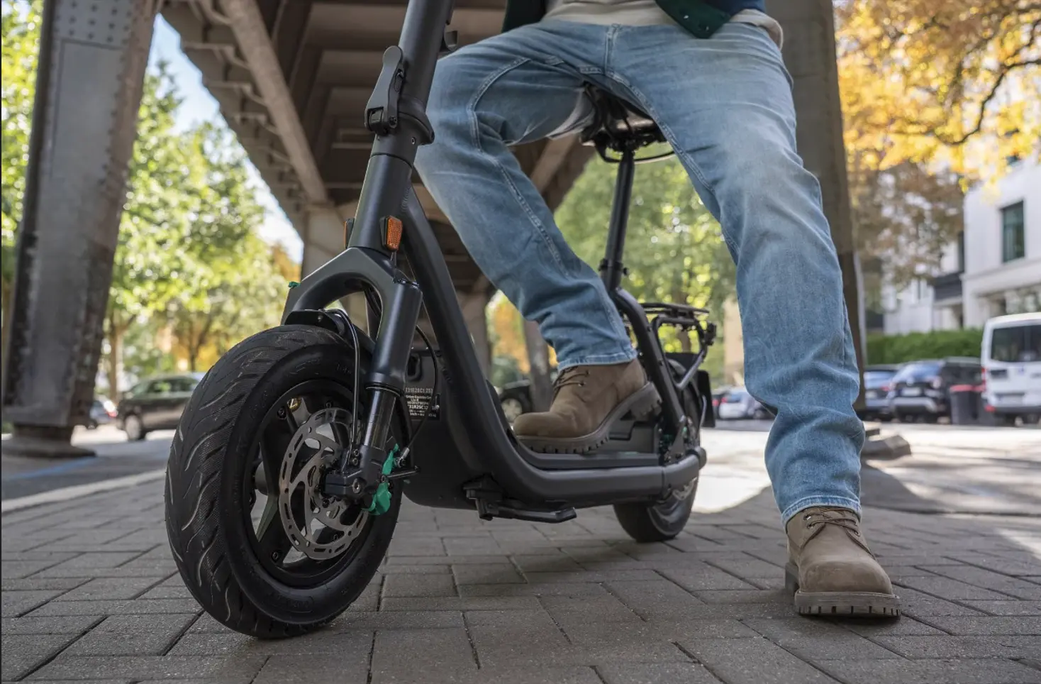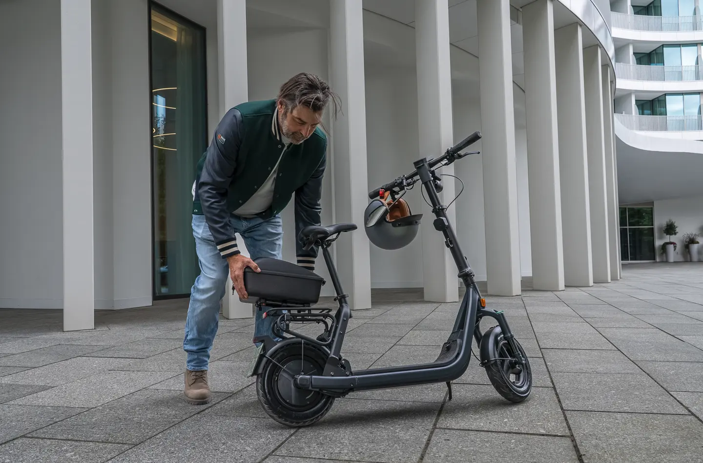 With a top speed of 45 km/h it gets you to your destination quickly, dynamically while standing or relaxed while seated. Its removable battery and ergonomic seat make it the ideal mix of scooter, moped and e-bike, without compromising on style.