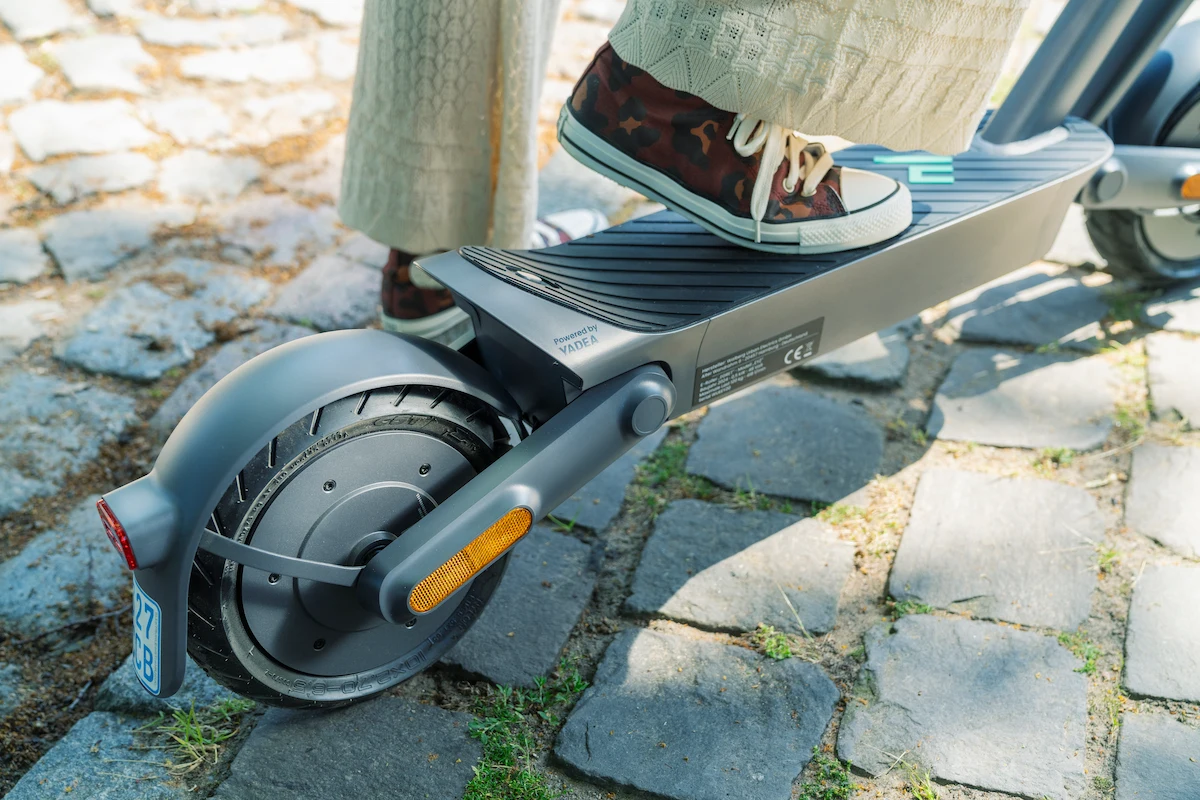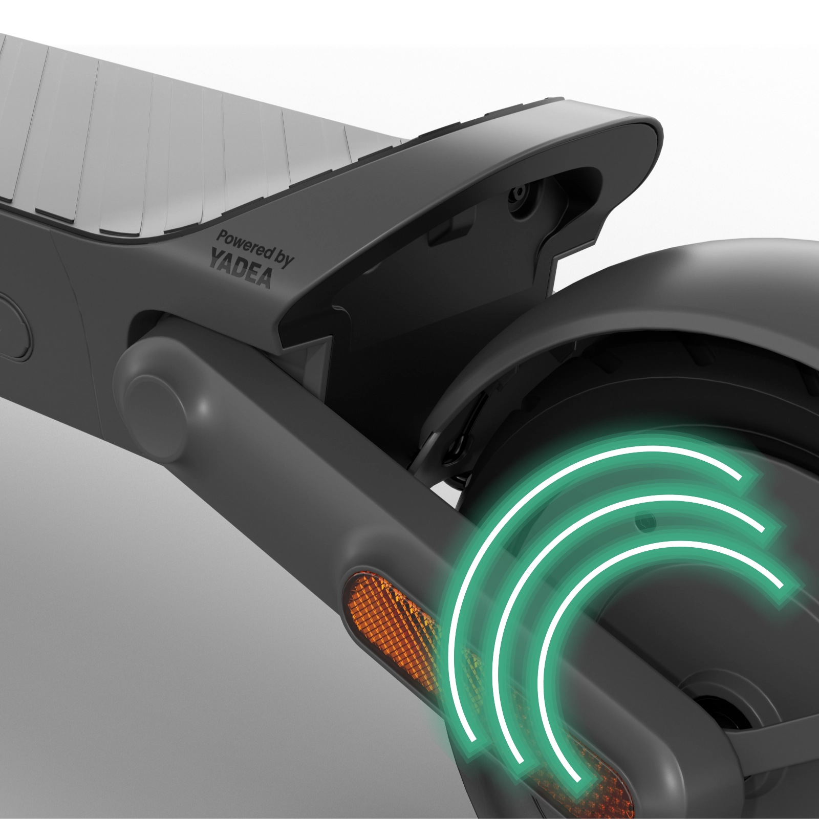 Mit der mechanischen Trommelbremse vorne und einer elektronischen Bremse hinten stoppt der Ey! 2 nicht nur stark, sondern auch wartungsarm – denn beide Systeme bleiben im Inneren des Rades vor Dreck und Wetter abgeschirmt.