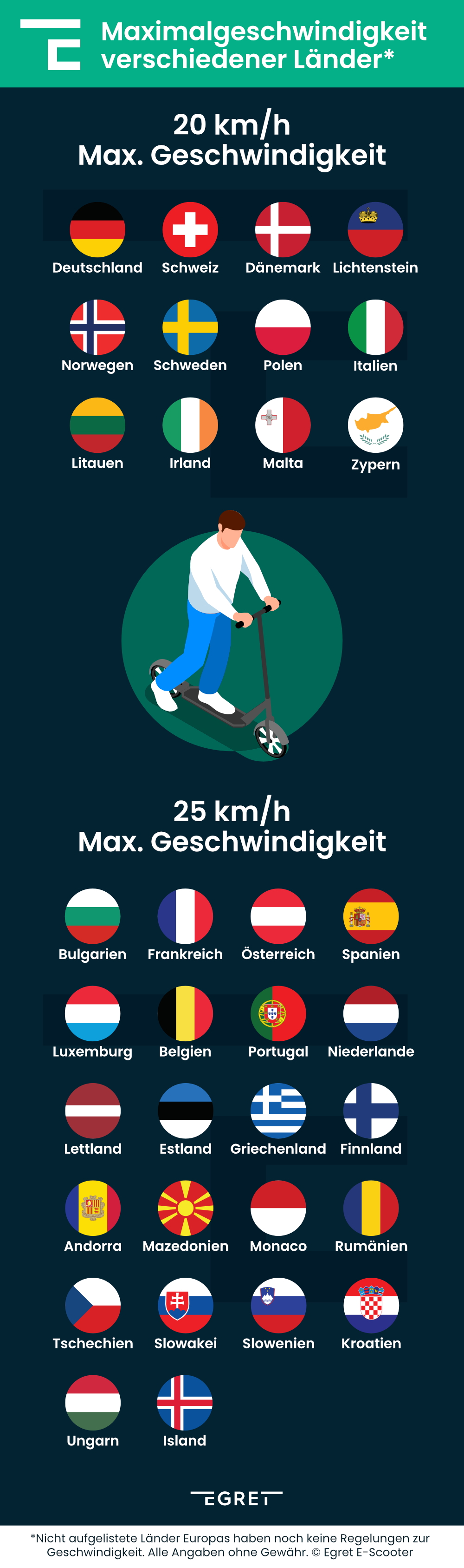 Ganz einfach: Die zulässige Höchstgeschwindigkeit von 20 km/h wurde gesetzlich festgelegt, damit E-Scooter sicher im Straßenverkehr unterwegs sind. Allerdings erlaubt der Gesetzgeber eine Toleranzgrenze von +10 %, die wir als Hersteller natürlich voll ausschöpfen. Daher fahren unsere E-Scooter Modelle ganz legal bis zu 22 km/h. In anderen europäischen Ländern sind auch bis zu 25 km/h erlaubt. Das ist jedoch europaweit nicht einheitlich.